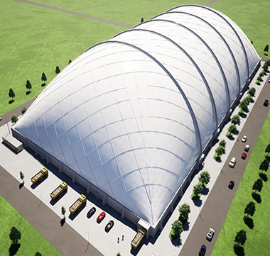 無梁無柱大跨度空間,跨度可達180米,空間使用率可達九成以上,體育、娛樂、展示等多功能需求均可應用,在煤倉和汙水處理方麵也可應用。